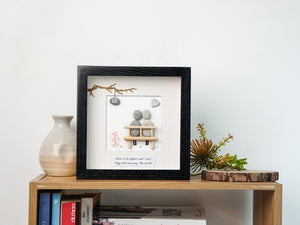 The stone art is really cute and unique. I plan to gift this to my mother on mother's day. I think she'll love it. The art was packaged well and arrived quickly considering customization.