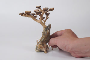 The intricately designed moss bonsai tree attached to the driftwood adds a vibrant splash of greenery. This living art piece thrives in the humid conditions of your tank or terrarium, creating a miniature forest that mimics nature.