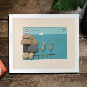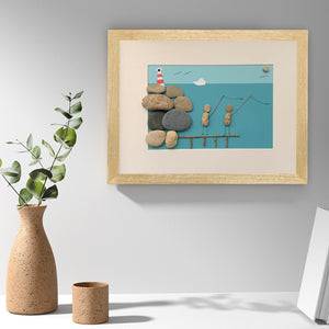 Charming Fishing Scene Art Frame, Perfect Birthday Gift for Uncle, Pebble Art For Uncle