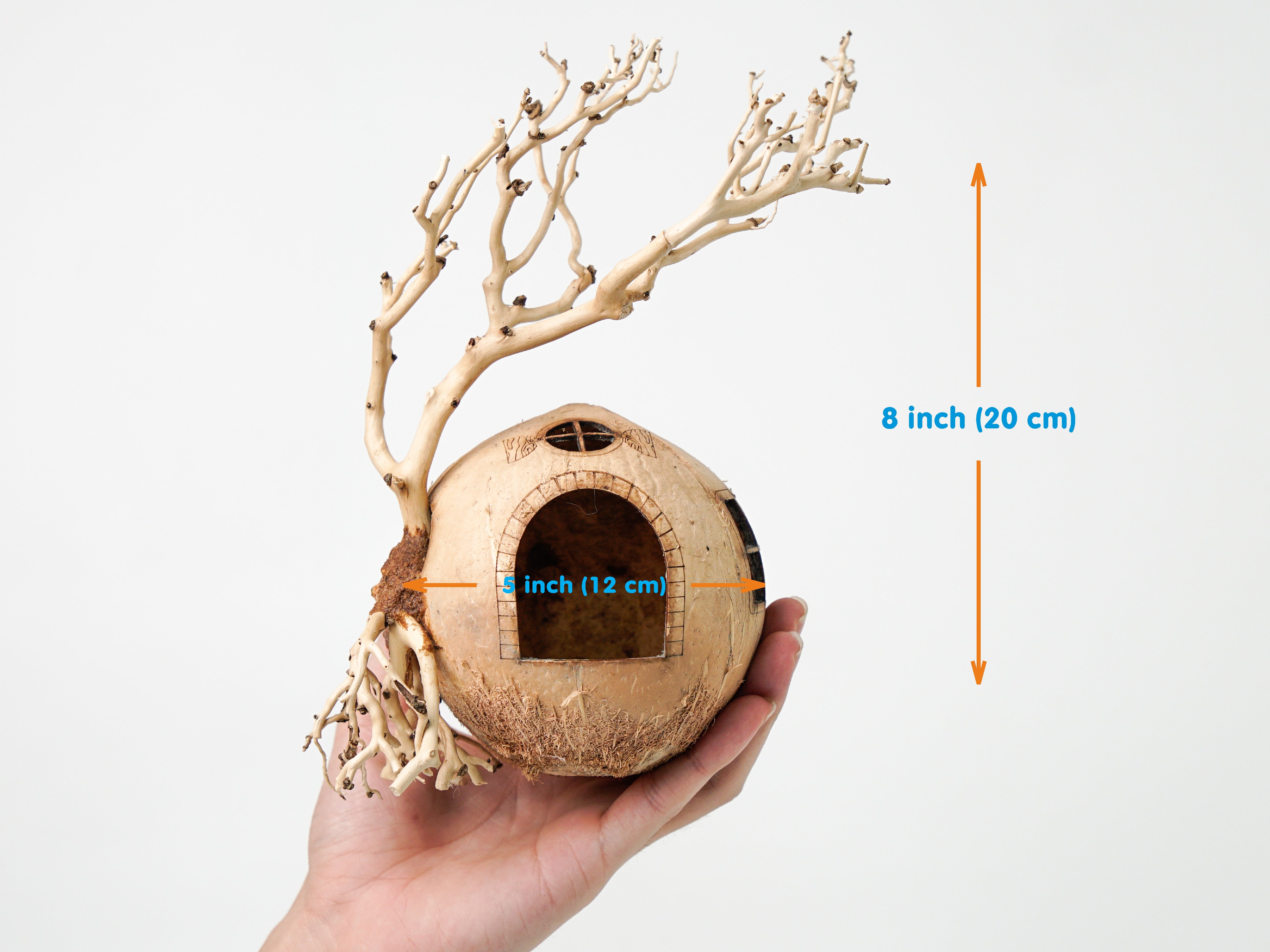 • Handcrafted Excellence: Each cave is meticulously handmade using natural coconut shells and driftwood, ensuring a unique and high-quality aquarium decoration.
