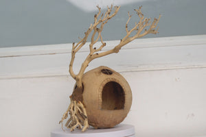 Enhance your aquarium with our Coconut Shell Cave With Driftwood Bonsai, a unique and natural decoration that provides a safe and cozy hideout for your aquatic pets. This beautifully handcrafted piece combines the rustic charm of a coconut shell with the natural elegance of driftwood, creating a stunning and functional addition to any aquarium.