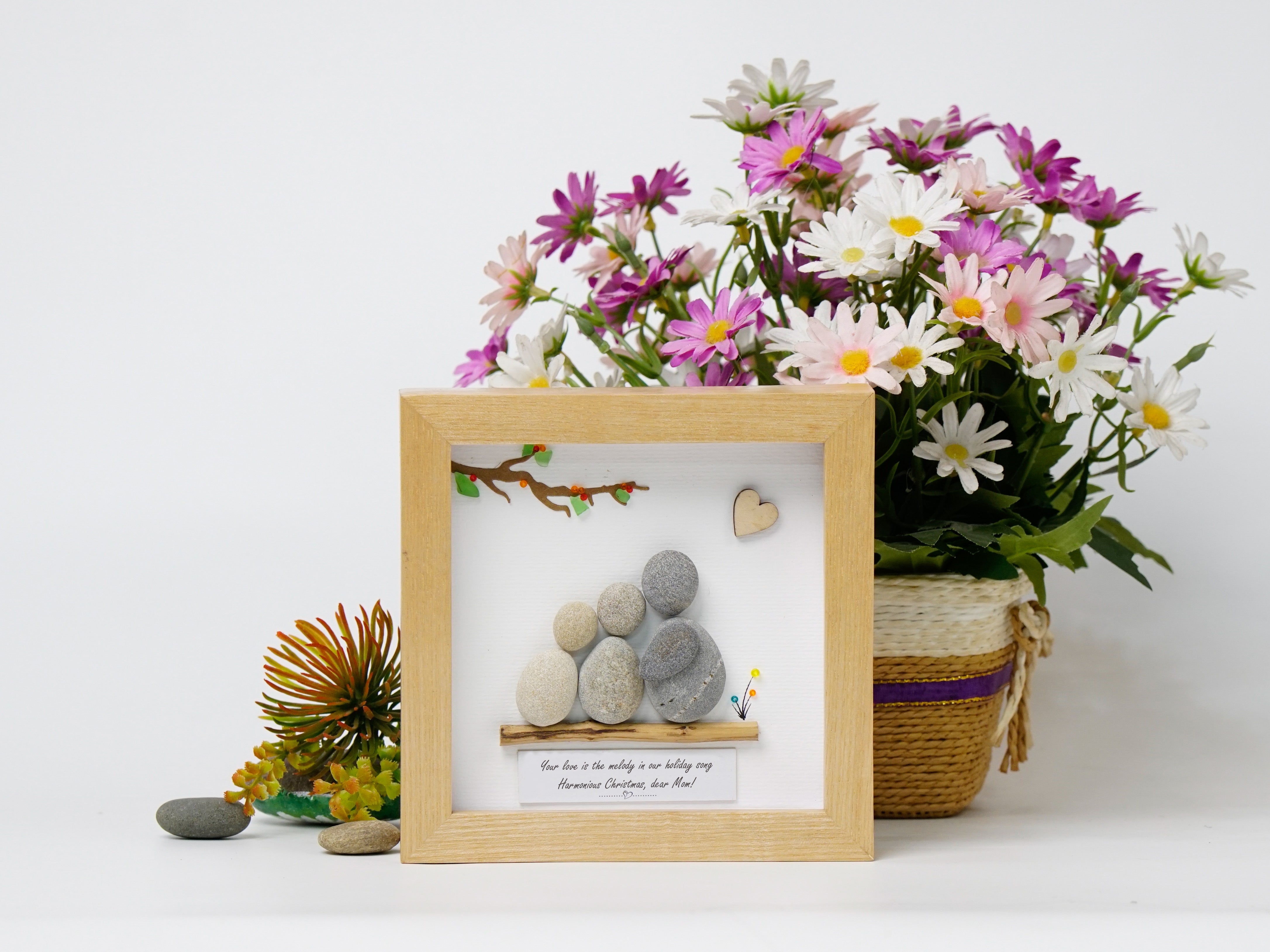 The stone art is really cute and unique. I plan to gift this to my mother on mother's day. I think she'll love it. The art was packaged well and arrived quickly considering customization.