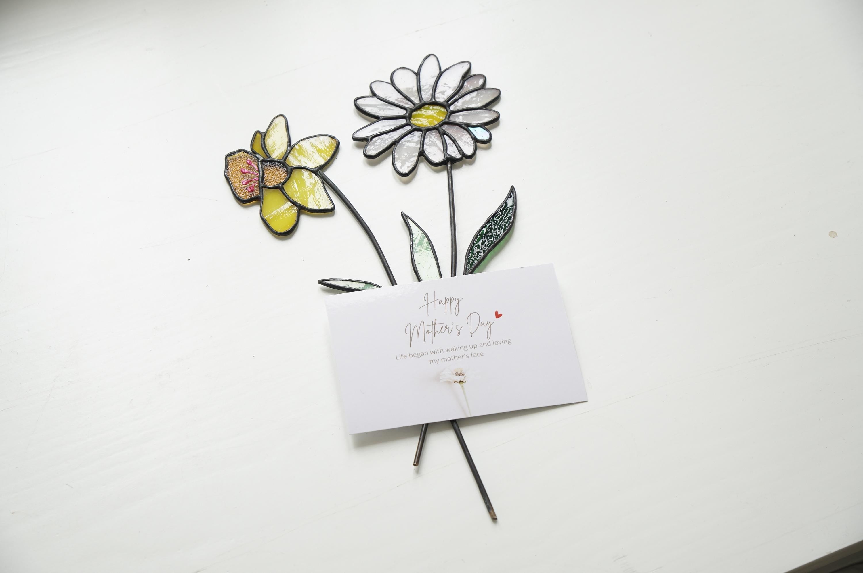 This daffodil suncatcher makes an ideal personalized daffodil gift for March birthdays, Mother's Day, or any special occasion honoring mothers, grandmothers, or anyone with a love for floral art and home decor. Make it even more special by adding an engraved message on the wooden base for a truly custom stained glass touch (optional). It’s not just a stained-glass suncatcher; it’s a piece of daffodil art that brightens every day.