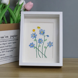 Home Forget Me Not Flower Birds Sea Glass Art Framed, Flower Sea Glass Wall Art, Best Friend Gift, Unique Sea Glass Present, Sea Glass Birds Art Wall Decor
