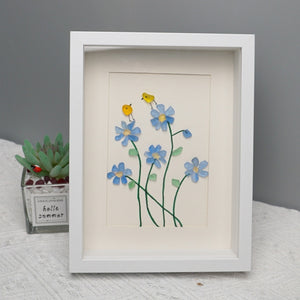 Forget Me Not Flower Birds Sea Glass Art Framed, Flower Sea Glass Wall Art, Best Friend Gift, Unique Sea Glass Present, Sea Glass Birds Art Wall Decor