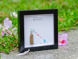 The stone art is really cute and unique. I plan to gift this to my mother on mother's day. I think she'll love it. The art was packaged well and arrived quickly considering customization.