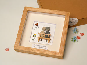 The stone art is really cute and unique. I plan to gift this to my mother on mother's day. I think she'll love it. The art was packaged well and arrived quickly considering customization.