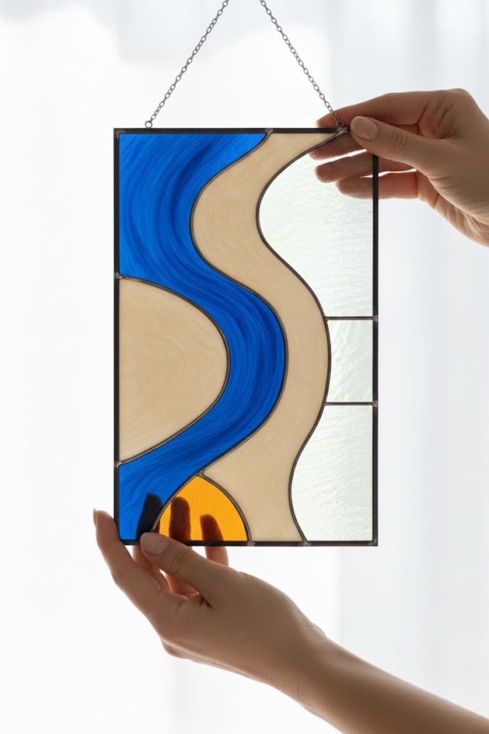Material: Premium stained glass, copper foil, solder, metal hanging chain.