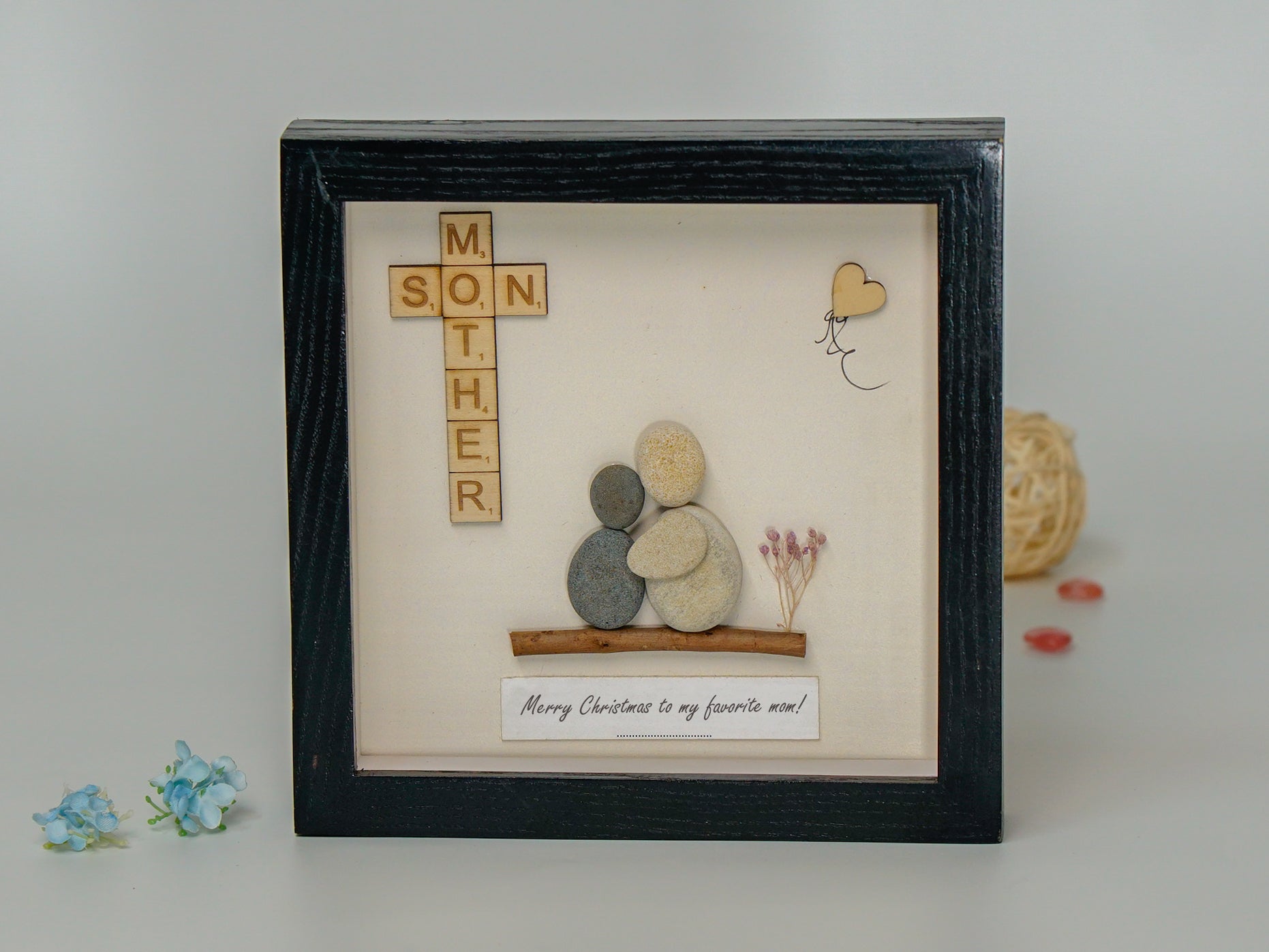 Home Handcrafted Mother And Son Christmas Pebble Frame, Christmas Gift for Mom, Mom's Christmas Gift from Son, Mom Christmas Gift