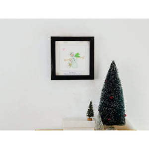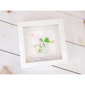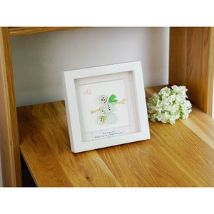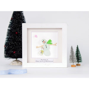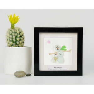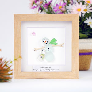 This handcrafted Christmas frame features a delightful cartoon snow globe design and includes a heartfelt message that reads "Merry Christmas, dad! Wishing you a cozy, warm, and healthy Christmas season!" Carefully crafted with a painted pebble motif, this pebble art is delicately held in a hand, serving as a festive and thoughtful ornament to celebrate the holiday season with your beloved father.