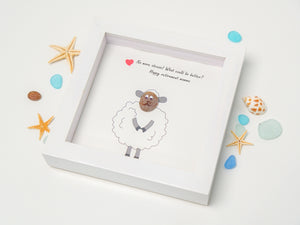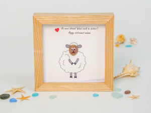 This charming art features a cartoon sheep design with the heartfelt message "No more stress! What could be better? Happy retirement mamma" written above it. Handcrafted with care, it serves as a loving reminder that it's time for her to relax and enjoy the beauty of this new chapter in her life.