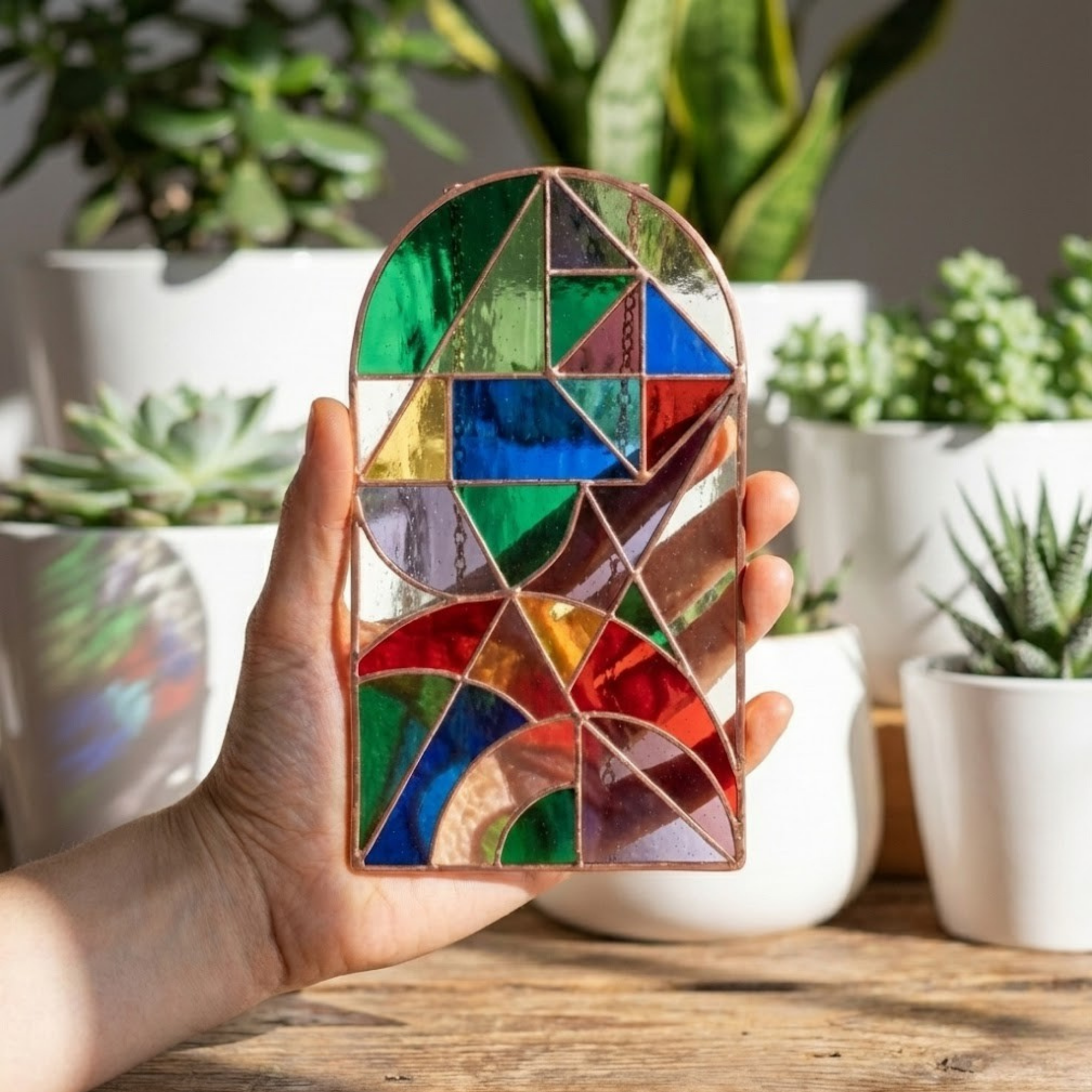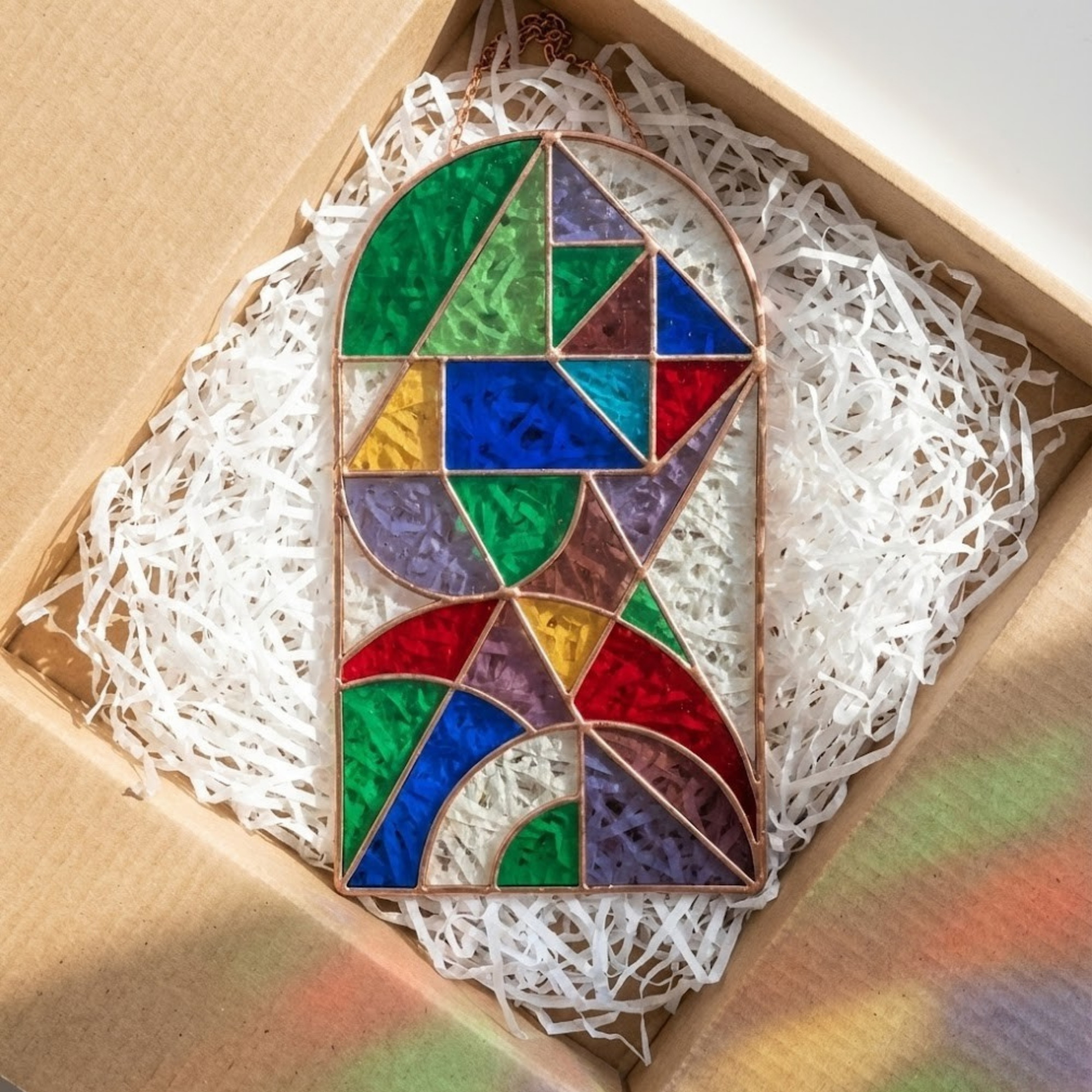 Artisan Cut: Every triangle and curve is hand-cut from high-quality art glass sheets.