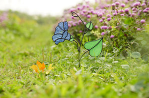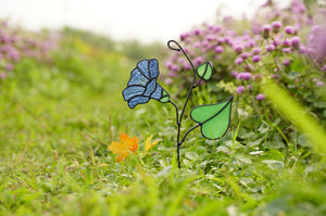 - Handmade with exquisite stained glass (blue morning glory blossom and green leaves)