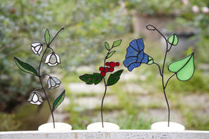 Bring a touch of serene beauty to your home with our captivating handcrafted Glass Morning Glory stained glass art piece. This charming morning glory flower features delicate blue petals and vibrant green leaves, each meticulously cut and assembled from radiant stained glass using traditional copper foil and lead solder techniques. Standing gracefully on a high-quality wooden base, its elegant dark metal stem adds a natural, artistic touch. Place this approximately 25 cm (9.84 inches) tall piece in a sunlit window, on a desk, or shelf to enjoy the enchanting play of light and color it creates.