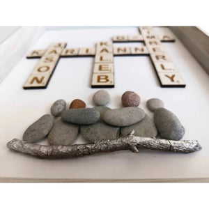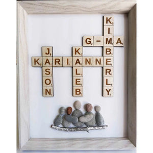 Pebble Art Family Scrabble Names Frame, Customized Family Picture, Handmade Custom Home Decor, Xmas Gift For Family