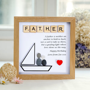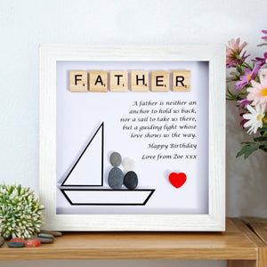Home Pebble Art Picture Frame, Dad Boat, Christmas Pebble Art For Dad, Gift For Dad, Personalised Gift Dad