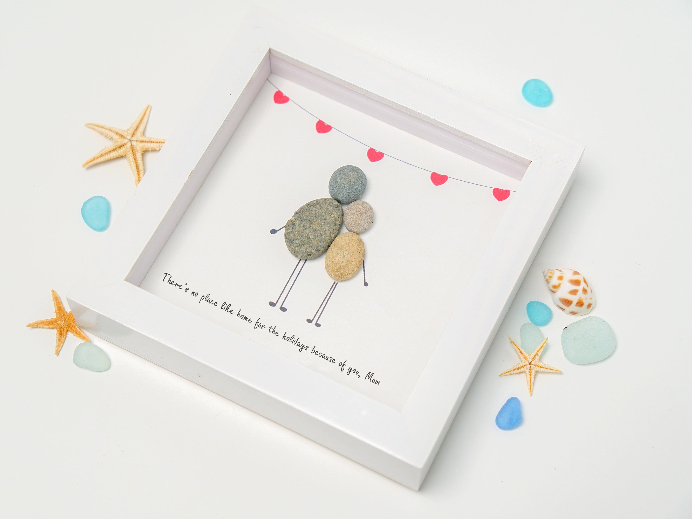 Celebrate your mom's special day with this charming and heartfelt Pebble Art Picture Frame, titled "Mother's Embrace." Featuring a beautifully handcrafted design made from natural pebbles, this artwork symbolizes the warmth and love shared between mother and child. The frame comes with a sweet message that reads, "There’s no place like home for the holidays because of you, Mom" making it a perfect personalized gift for your mom. This unique piece of art is not just a decoration but a meaningful reminder of the bond you share with your mom, perfect for christmas or any occasion that celebrates her love.
