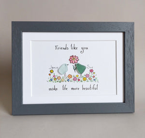 Celebrate the special bond with your best friend or loved one with our Personalised Best Friend Sea Glass Art. This beautifully handcrafted artwork combines natural sea glass and pebbles to create a unique and touching piece, perfect for birthdays, anniversaries, or any special occasion. Whether it's a gift for a friend, wife, or him, this sea glass art will be a cherished keepsake that captures the essence of your relationship.