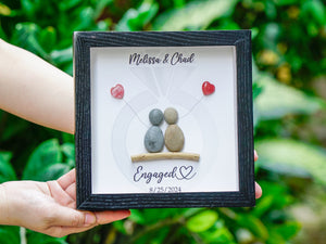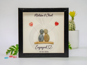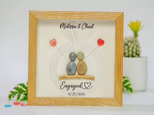 Personalised Engagement Pebble Art, Engaged Frame Gift, Engagement Gift For Couple, Anniversary Gift, Engagement Keepsake Memory