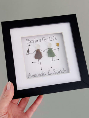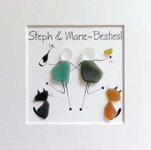 Order your own personalized friendship picture to gift to your besties. This best-selling design is presented in your choice of white, grey or black 17.5cm frame with a stand attached and is simple, elegant, and celebrates everything fabulous about friendships. It will be made to order for you using sea glass I have collected from my beachy travels and you can choose your text, mount, and frame color combination to create the perfect gift for a friend or loved one.