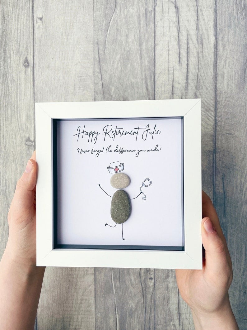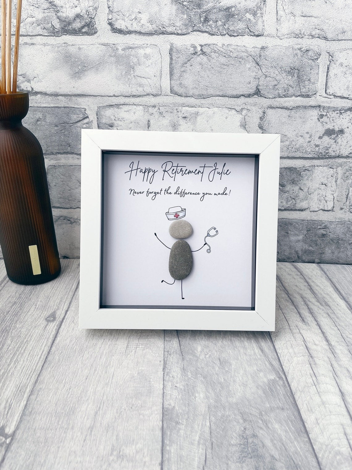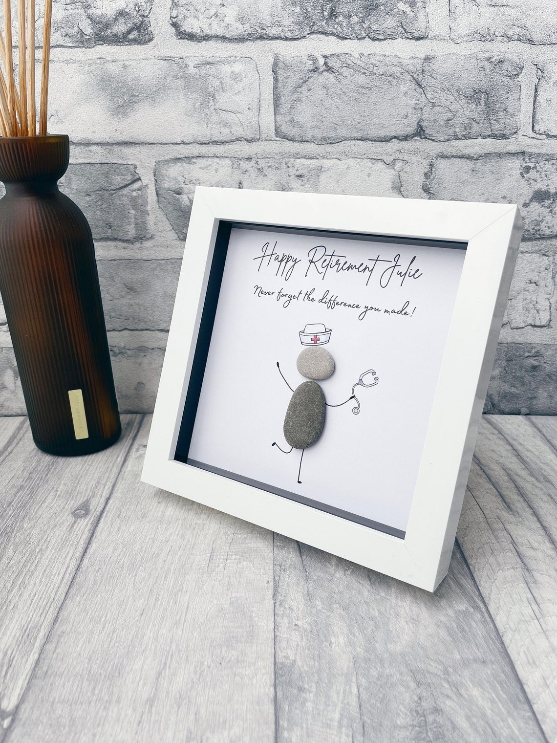 Personalised Retirement Nurse Gift Pebble Art Picture Doctor Retirement, Retirement Gifts for Mom, Retirement Frame Work Colleague Leaving