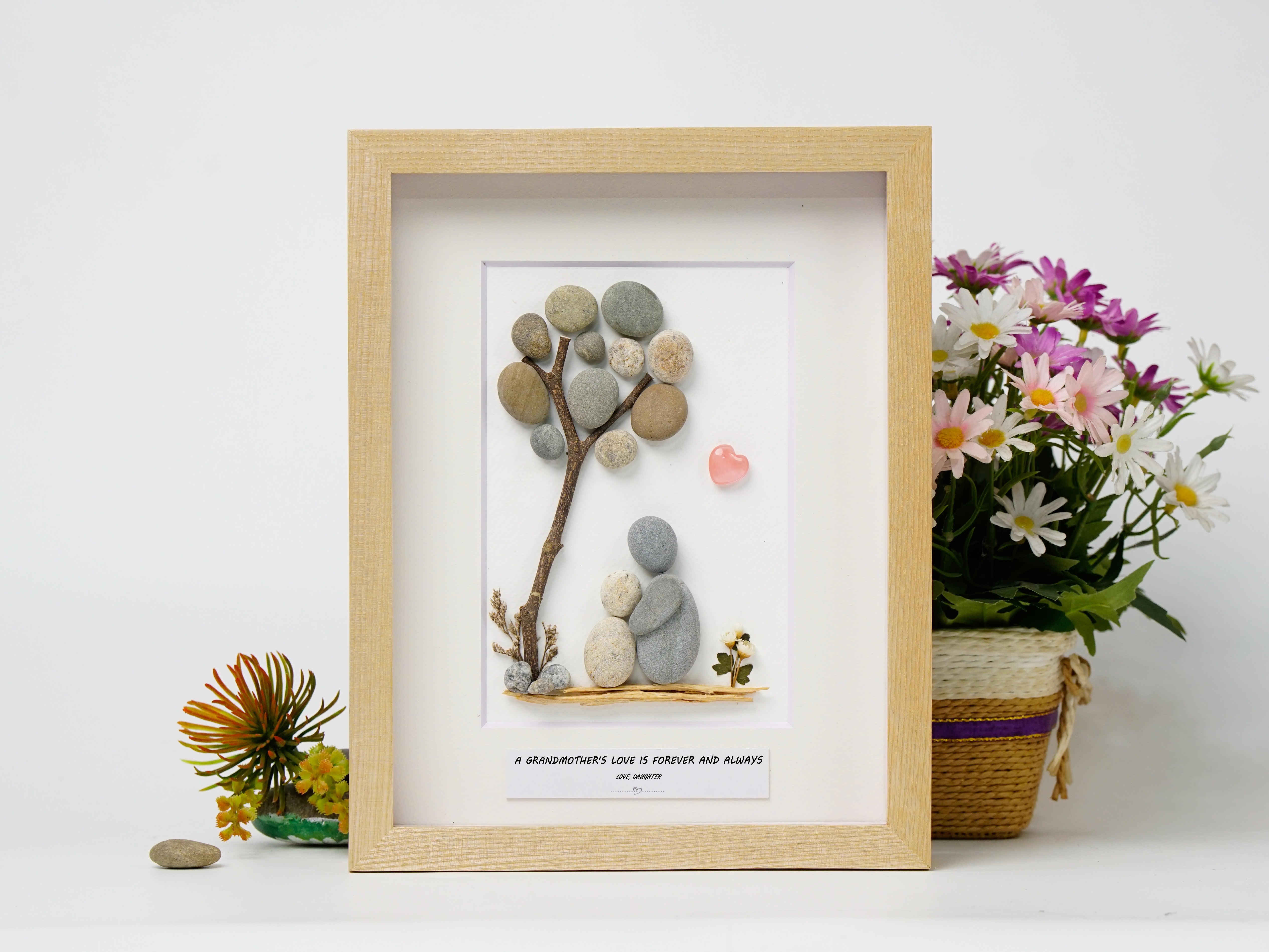 The stone art is really cute and unique. I plan to gift this to my mother on mother's day. I think she'll love it. The art was packaged well and arrived quickly considering customization.