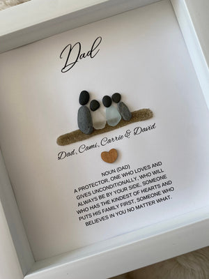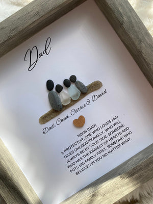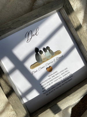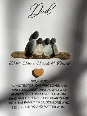 • Natural Materials: Made from natural sea glass and pebbles, arranged in a heartwarming scene that symbolizes the bond between you and your dad.