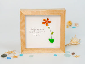 Home Personalized Flowers Mother's Day Sea Glass Art, Happy Mother's Day Gift For Mom, Birthday Mom Gifts From Daughter, Mother's Day Flower Frame Art
