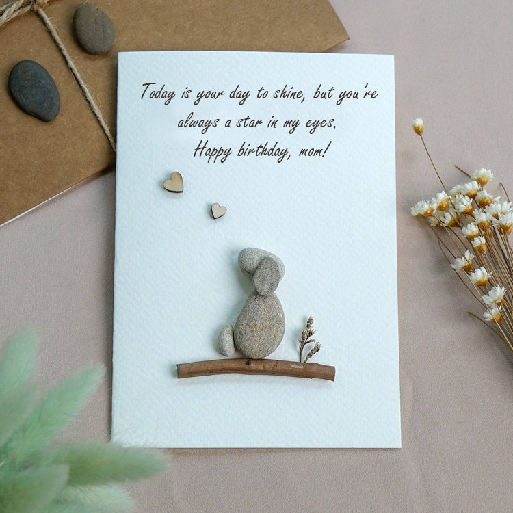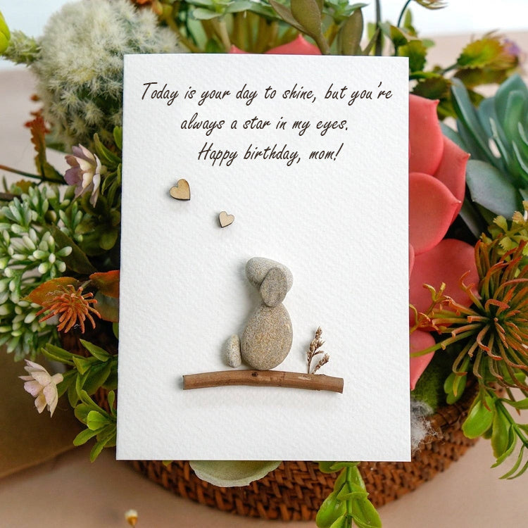 Personalized Happy Birthday For Mom, Mom Birthday Gift, Dog Mom Gift, Pebble Art Card for Mom's Birthday, Handmade Gift For Mom