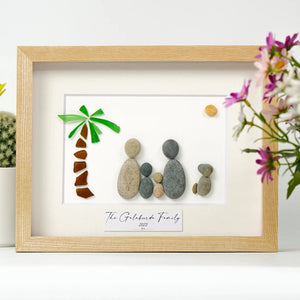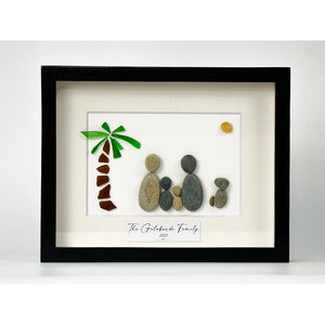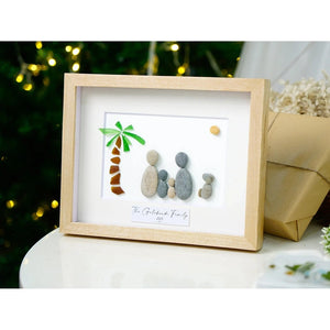 Home Personalized Pebble Art Family Coconut Tree with Driftwood Frame, Handmade Custom Home Decor, Family Christmas Gift