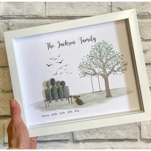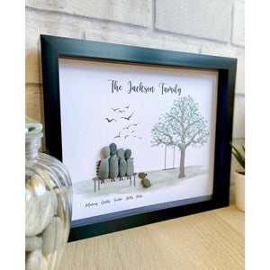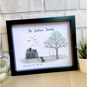 Home Personalized Pebble Art Family Tree with Driftwood Frame, Handmade Custom Home Decor, Christmas Frame Family