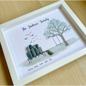 Personalized Pebble Art Family Tree with Driftwood Frame, Handmade Custom Home Decor, Christmas Frame Family