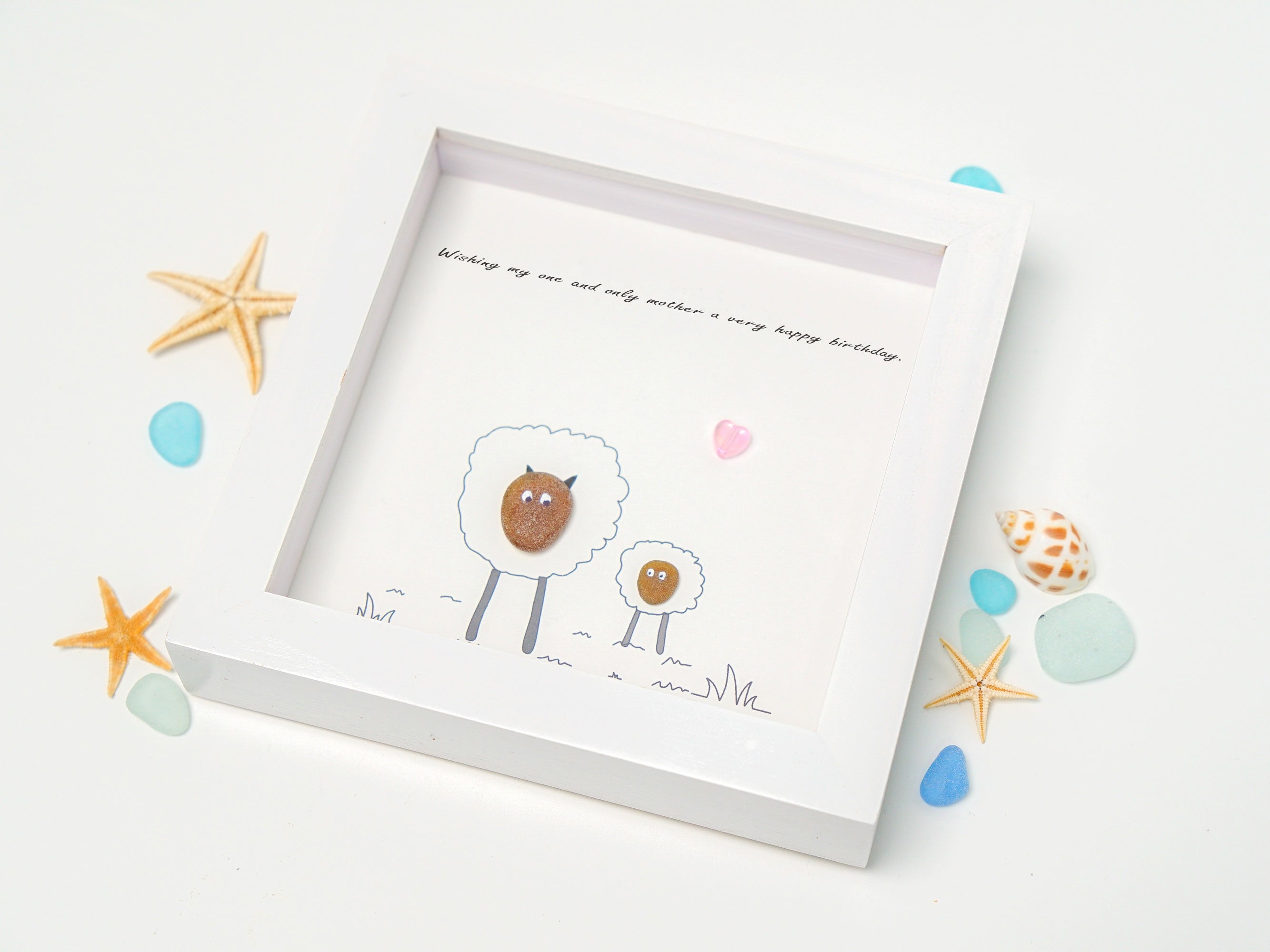 Home Personalized Sheep Mom Pebble Art, Birthday Gift for Sheep Mom, Sheep Frame, Sheep Mama Gift, Sheep Lover Animal