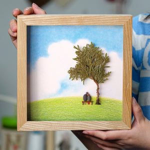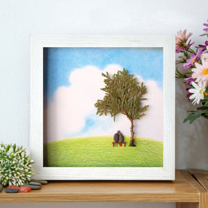 Honor your dad's retirement with our enchanting Serene Tree and Bench Frame! This exquisite piece captures a tranquil scene featuring a beautifully crafted tree and a cozy bench set against a calming blue sky and green hills. The thoughtful details create a sense of peace and reflection, perfect for those moments of enjoying life’s simple pleasures.