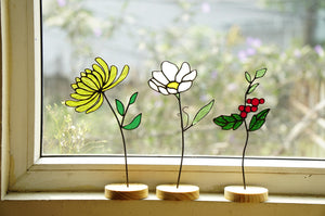 Looking for the perfect **chrysanthemum gift**? This unique stained glass piece is an ideal present for birthdays (especially for those born in November, as chrysanthemums are a traditional birth flower, or simply lovers of autumn blooms!), anniversaries, Mother's Day, or just to show someone you care. It’s a wonderful way to bring lasting joy and a splash of color to mothers, grandmothers, friends, or anyone who appreciates handcrafted beauty. Customize your **chrysanthemum art** by adding an engraved message on the wooden base for an extra-special touch (optional).