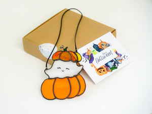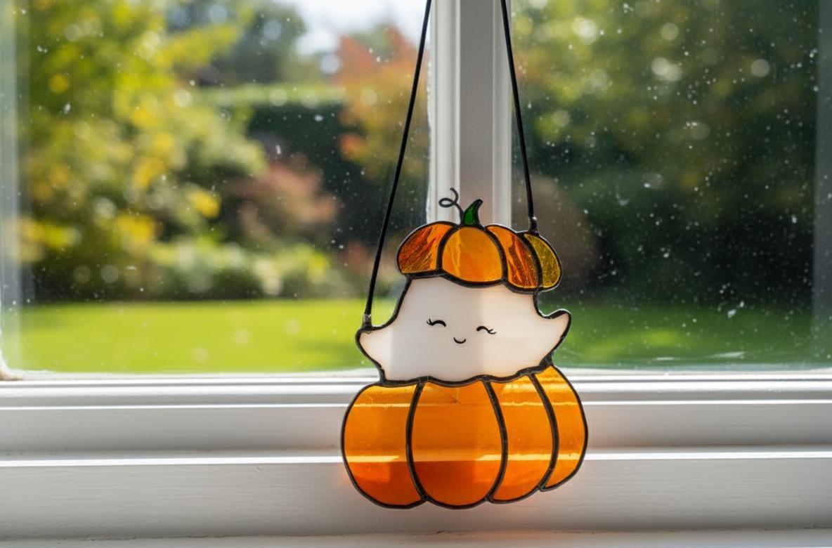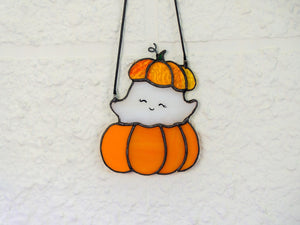 Stained Glass Ghost Pumpkin Suncatcher - Friendly Halloween Decor, Handmade Window Hanging, Spooky Season Gift, Tiffany Art Glass