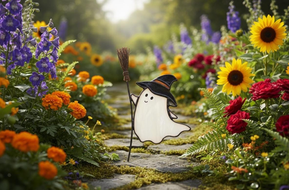 Home Stained Glass Ghost Suncatcher - Spooky Halloween Decor, Gothic & Witchy Decor, Handmade Glass Art, Tiffany Method Window Hanging, Home Gift