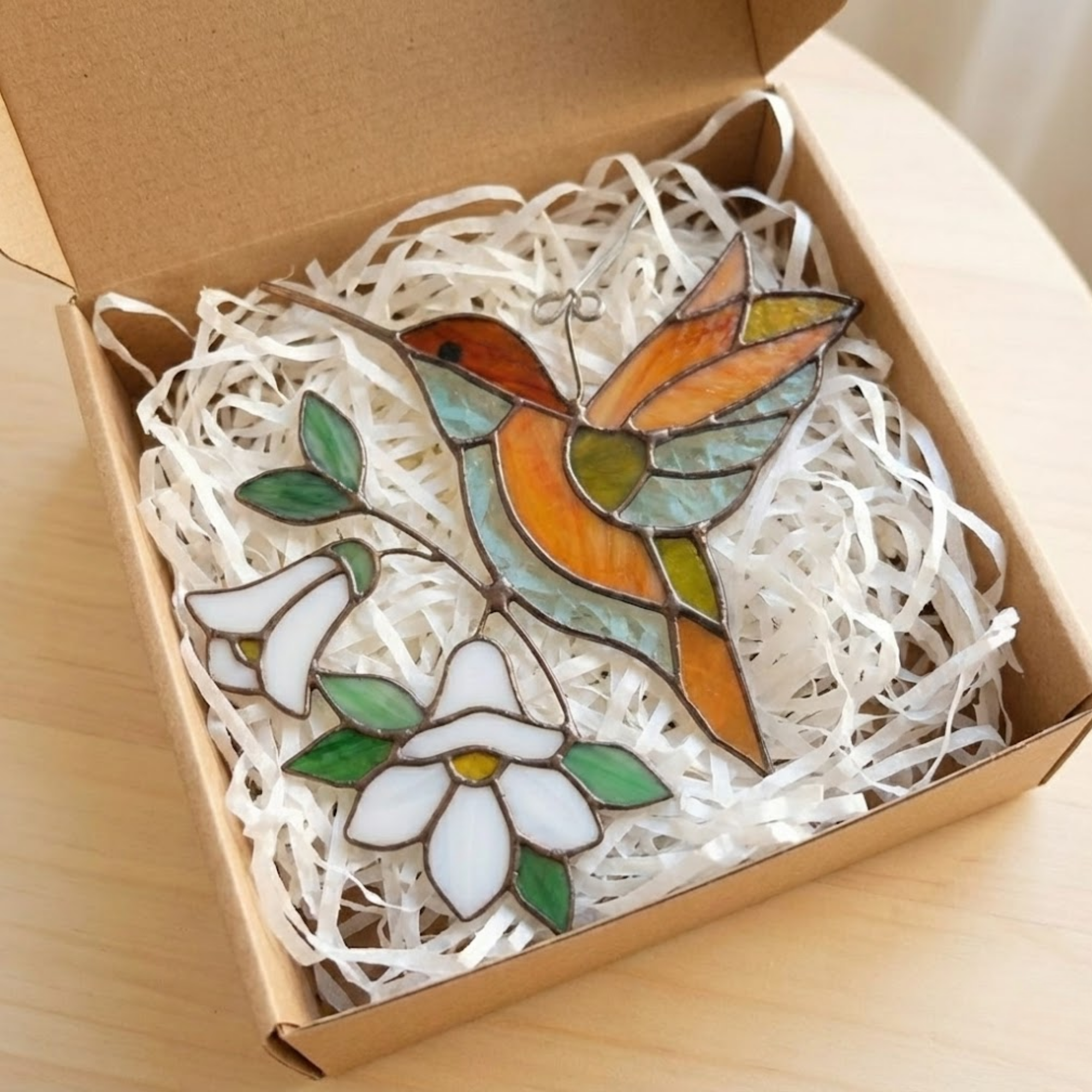 🌼 Handmade Stained Glass Hummingbird Suncatcher