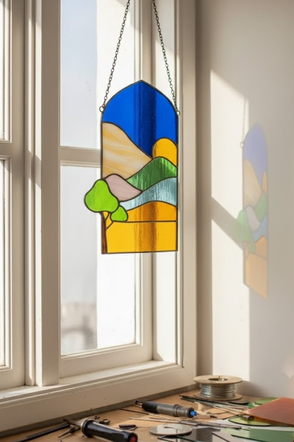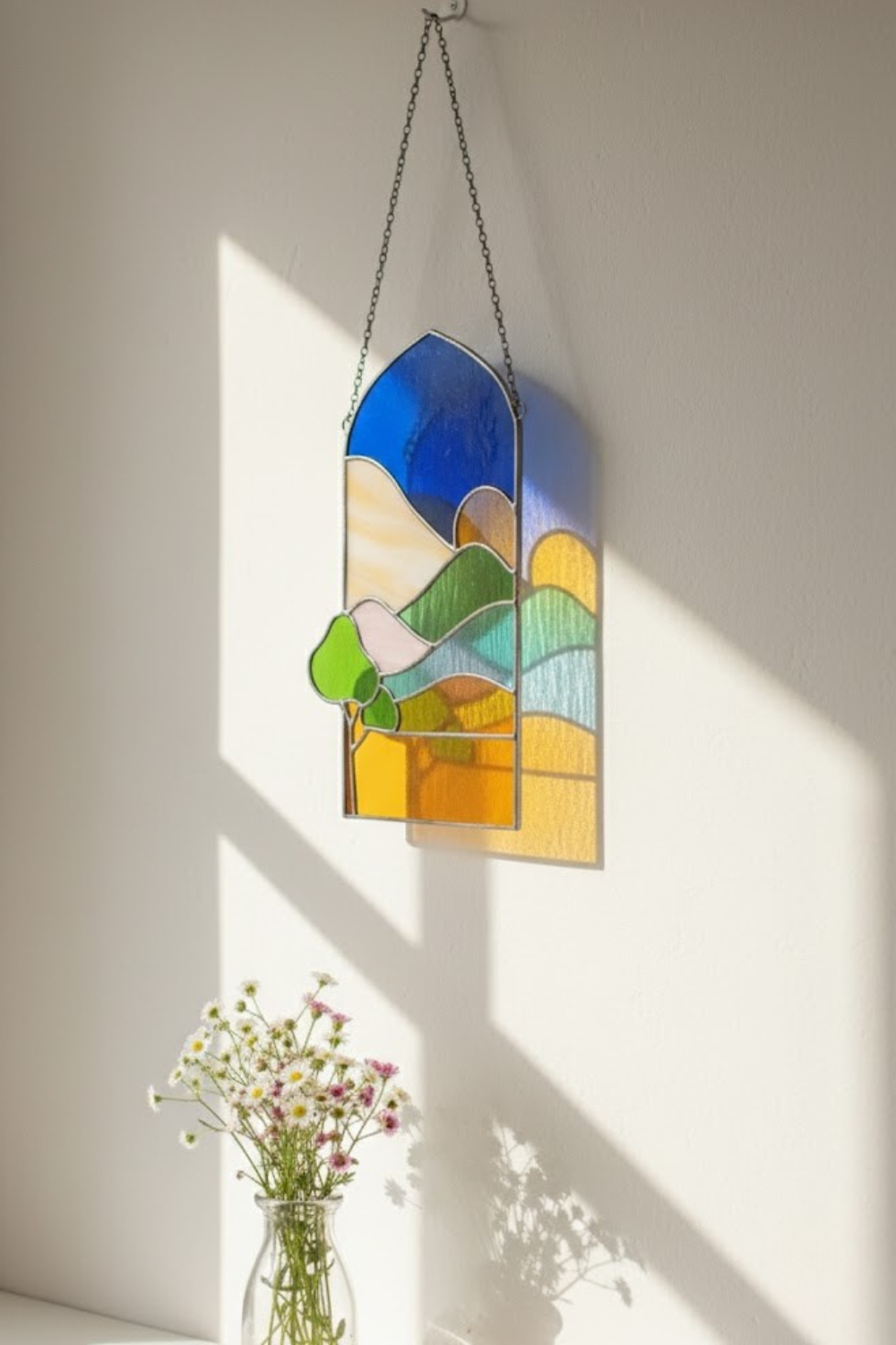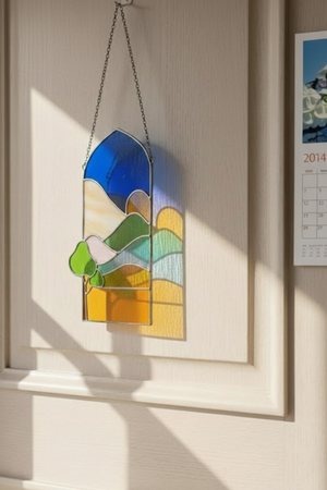 Bring the calming embrace of nature right into your living space. When the sunlight hits this piece, it doesn't just hang there; it transforms the light into a warm, painting-like projection on your walls. It captures that fleeting feeling of standing atop a quiet hill, watching the sun dip below the horizon—a moment of pure peace and artistic beauty that you can keep forever.