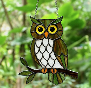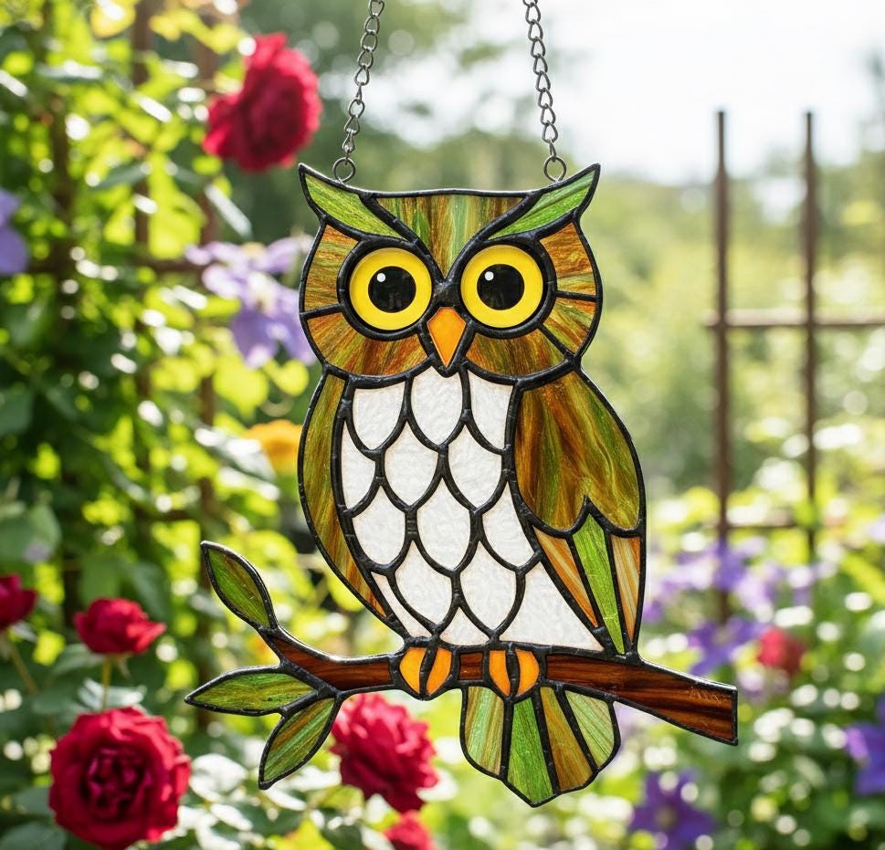 Stained Glass Owl Suncatcher, Owl Lover Gift, Window Hanging Decor, Handcrafted Glass Art, Unique Home Decor, Garden Decor, Window Art