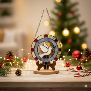 Home Stained Glass Peace Dove - Hopeful Window Suncatcher, Christmas Ornament, Holiday Decor, Olive Branch Symbol, Faux Stained Glass