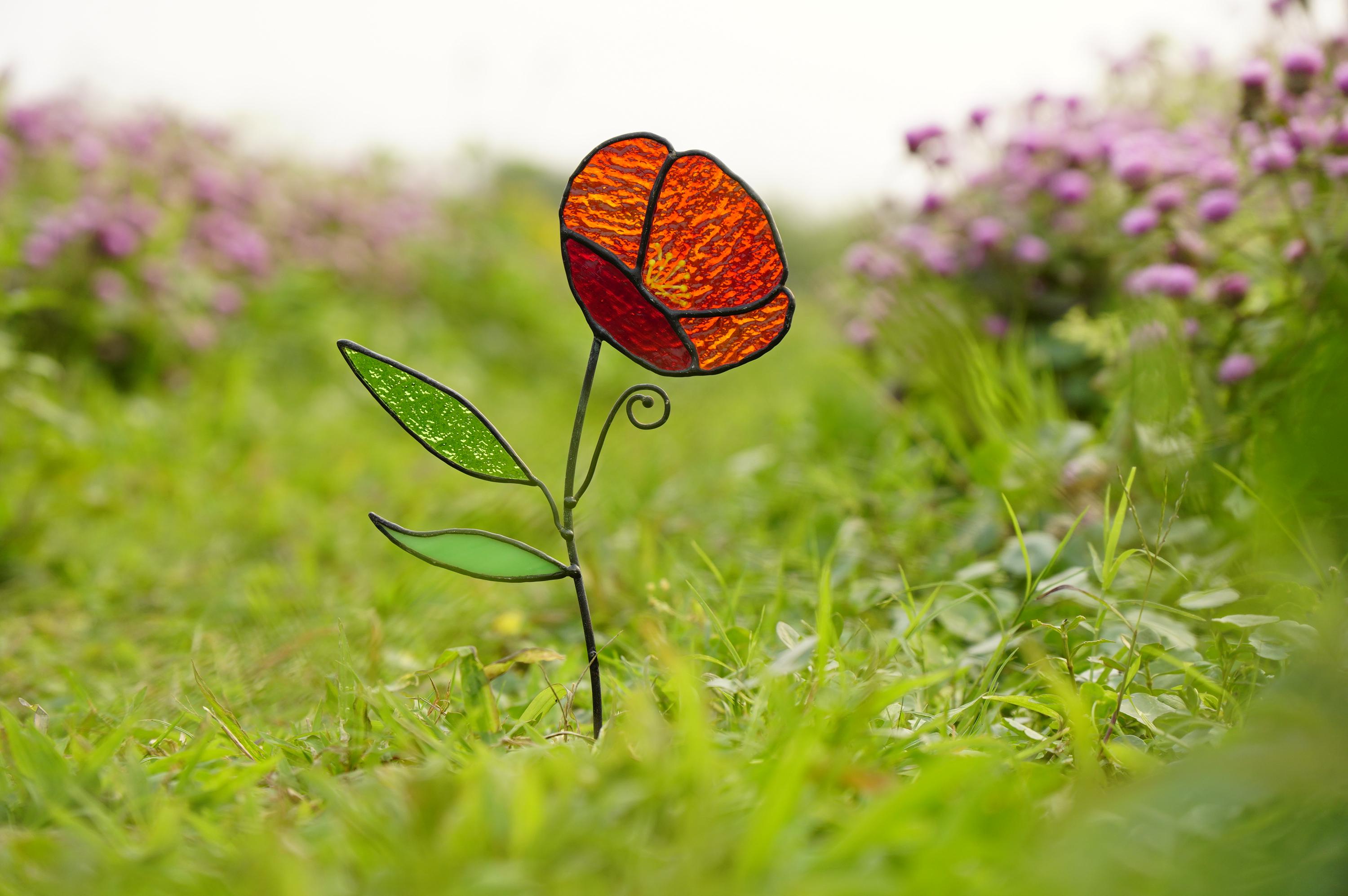 Bring a burst of joy and color to your home with our beautifully handcrafted ๐ฝ๐ผ๐ฝ๐ฝ๐ ๐๐๐ฎ๐ถ๐ป๐ฒ๐ฑ ๐ด๐น๐ฎ๐๐ art piece! This vibrant ๐ฝ๐ผ๐ฝ๐ฝ๐ ๐๐๐ป๐ฐ๐ฎ๐๐ฐ๐ต๐ฒ๐ฟ truly captures the warm spirit of a blossoming ๐ฝ๐ผ๐ฝ๐ฝ๐ ๐ณ๐น๐ผ๐๐ฒ๐ฟ, ready to add a touch of natural beauty and light to your space. Each delicate petal, in stunning shades of fiery orange and rich red, is meticulously crafted from radiant stained glass, then carefully assembled using traditional copper foil and lead solder techniques. Standing gracefully on a sturdy wooden base, this exquisite ๐๐๐ฎ๐ถ๐ป๐ฒ๐ฑ ๐ด๐น๐ฎ๐๐ ๐ฝ๐ผ๐ฝ๐ฝ๐ measures approximately 20 cm (7.87 inches) tall, making it a perfect accent for windows, shelves, or desks where it can beautifully catch and scatter the sunlight. It's a delightful example of ๐ฝ๐ผ๐ฝ๐ฝ๐ ๐ณ๐น๐ผ๐๐ฒ๐ฟ ๐ฎ๐ฟ๐ that truly shines.
