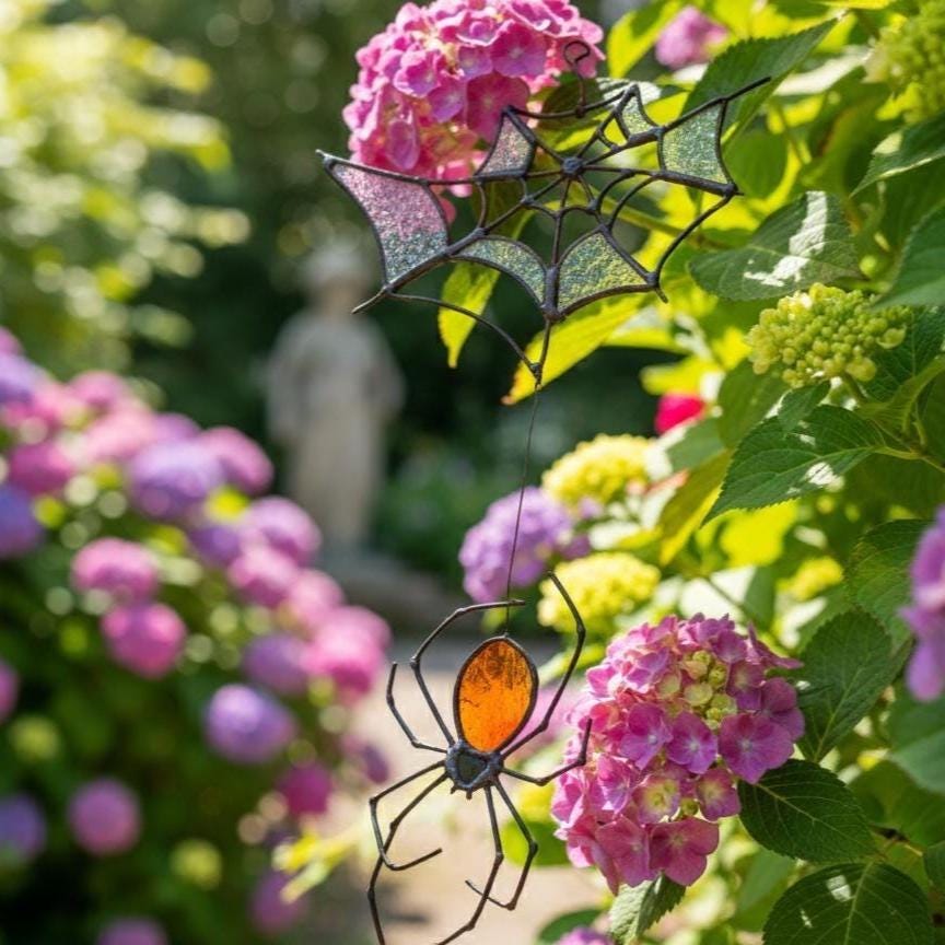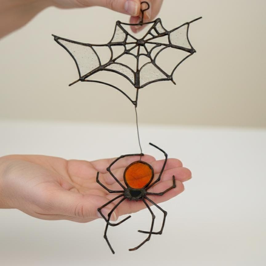 Stained Glass Spider Suncatcher - Spooky Halloween Decor, Gothic Window Hanging, Handmade Glass Art, Witchy Home Gift