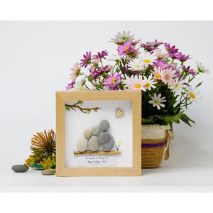 The stone art is really cute and unique. I plan to gift this to my mother on mother's day. I think she'll love it. The art was packaged well and arrived quickly considering customization.