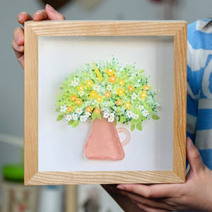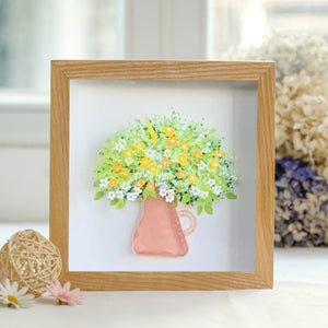Celebrate your dad's new chapter with our delightful Vibrant Floral Pitcher Frame! This beautiful artwork features a lush arrangement of cheerful flowers in shades of yellow and green, set in a charming terracotta pitcher. The elegant black frame adds a modern touch, making it a perfect accent for any room.
