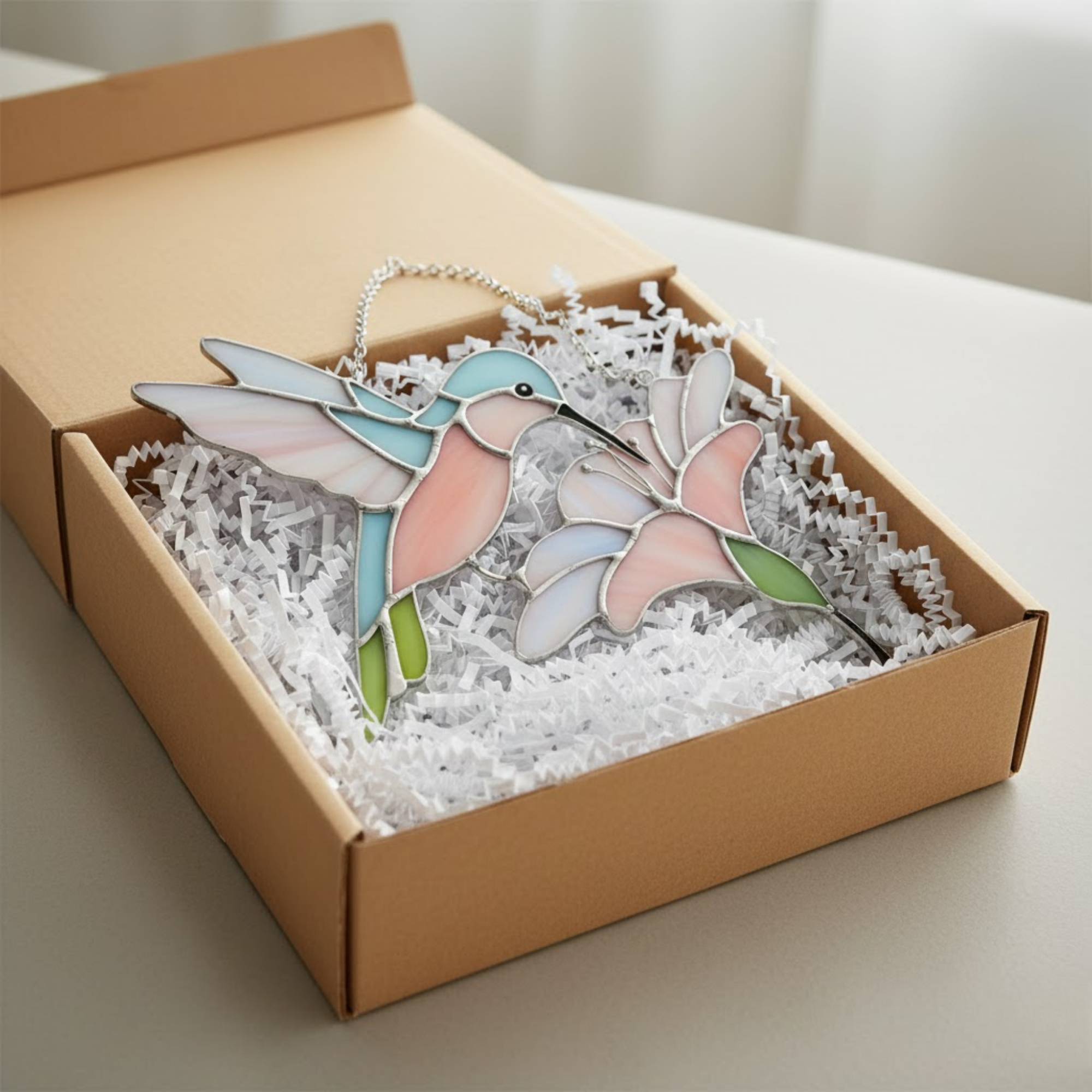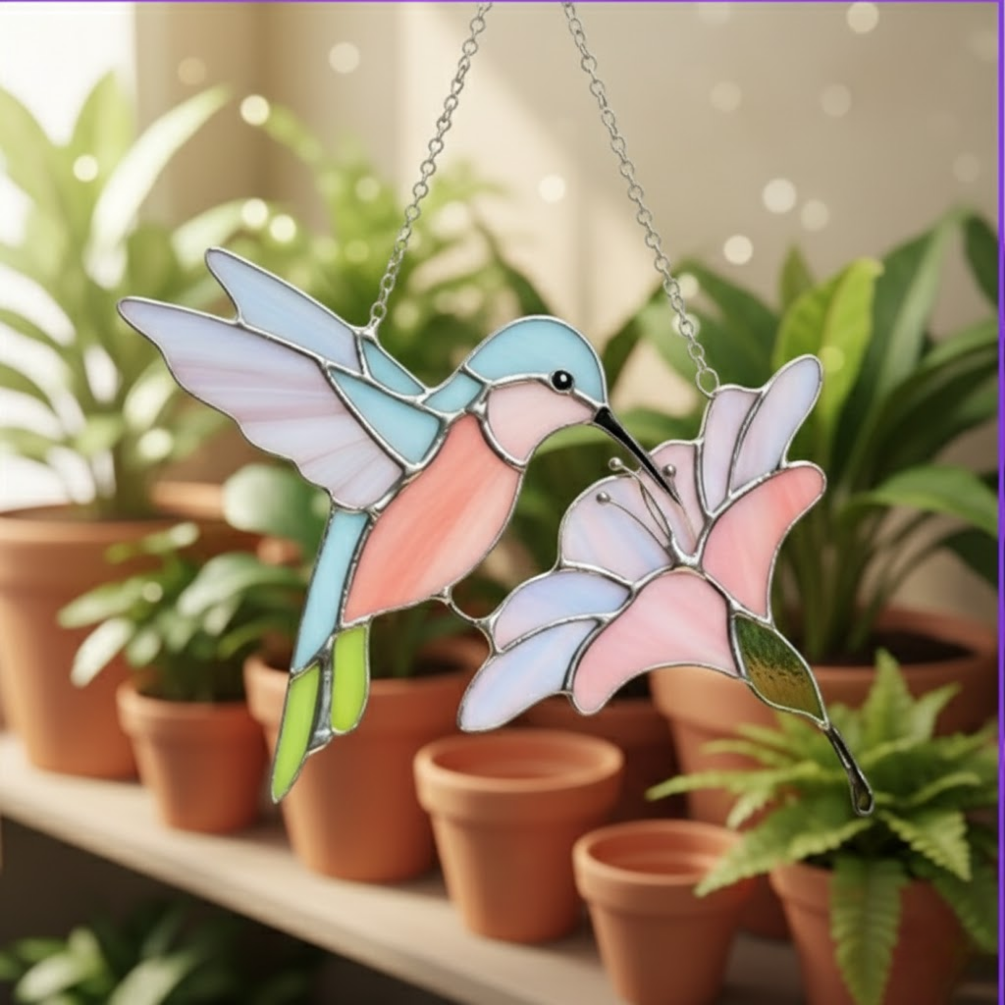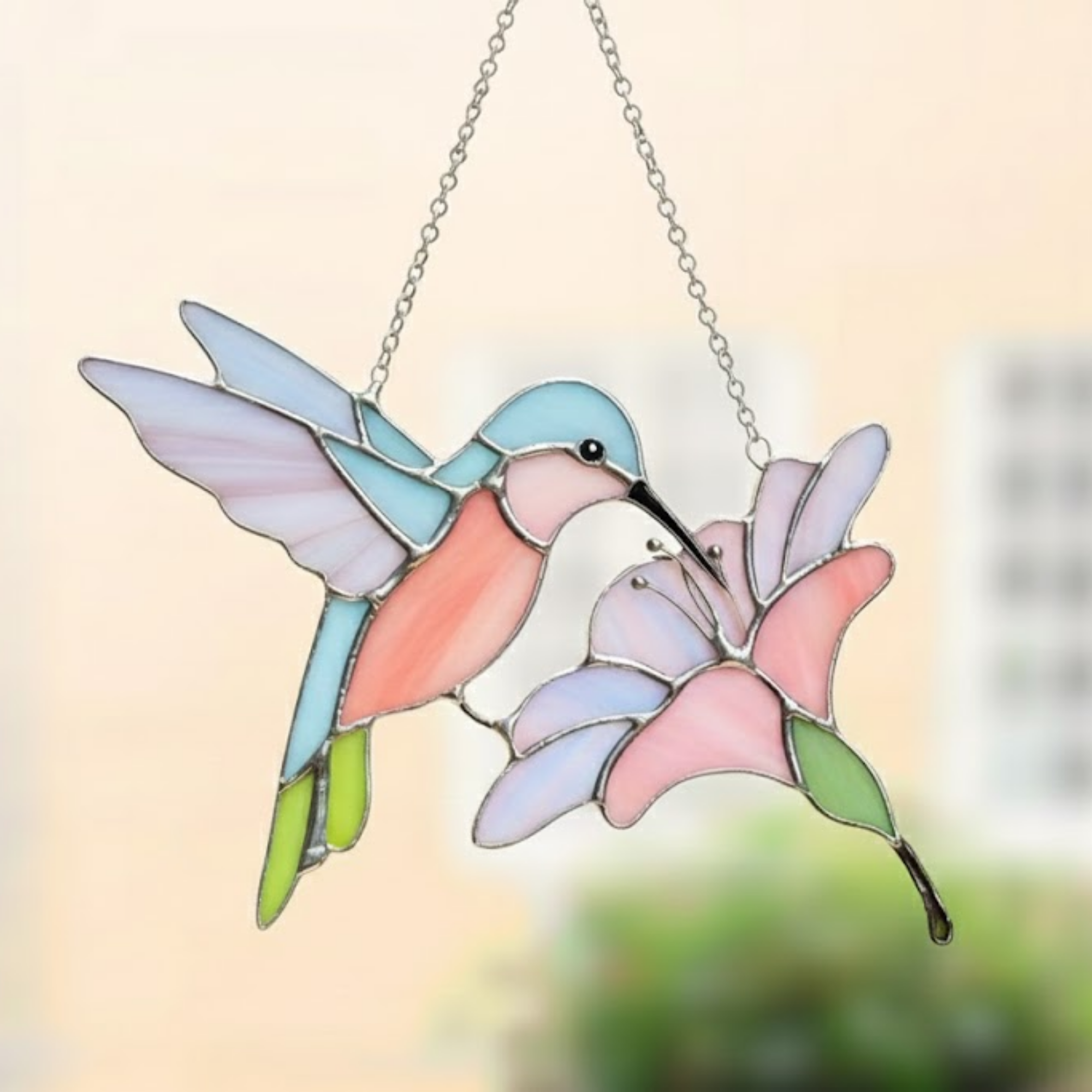 ✨ Imagine waking up to a dance of soft peach and mint green reflections playing across your walls. As the morning sun filters through the skylight, this delicate hummingbird frozen in flight catches every beam, transforming "just a window" into a living gallery. It’s a quiet moment of peace, a reminder to breathe and find beauty in the fleeting magic of nature.